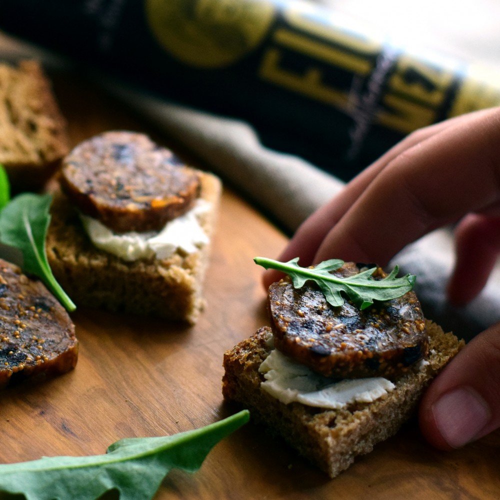 Snack med soltorkade grekiska fikon, Kalamataoliver & timjan